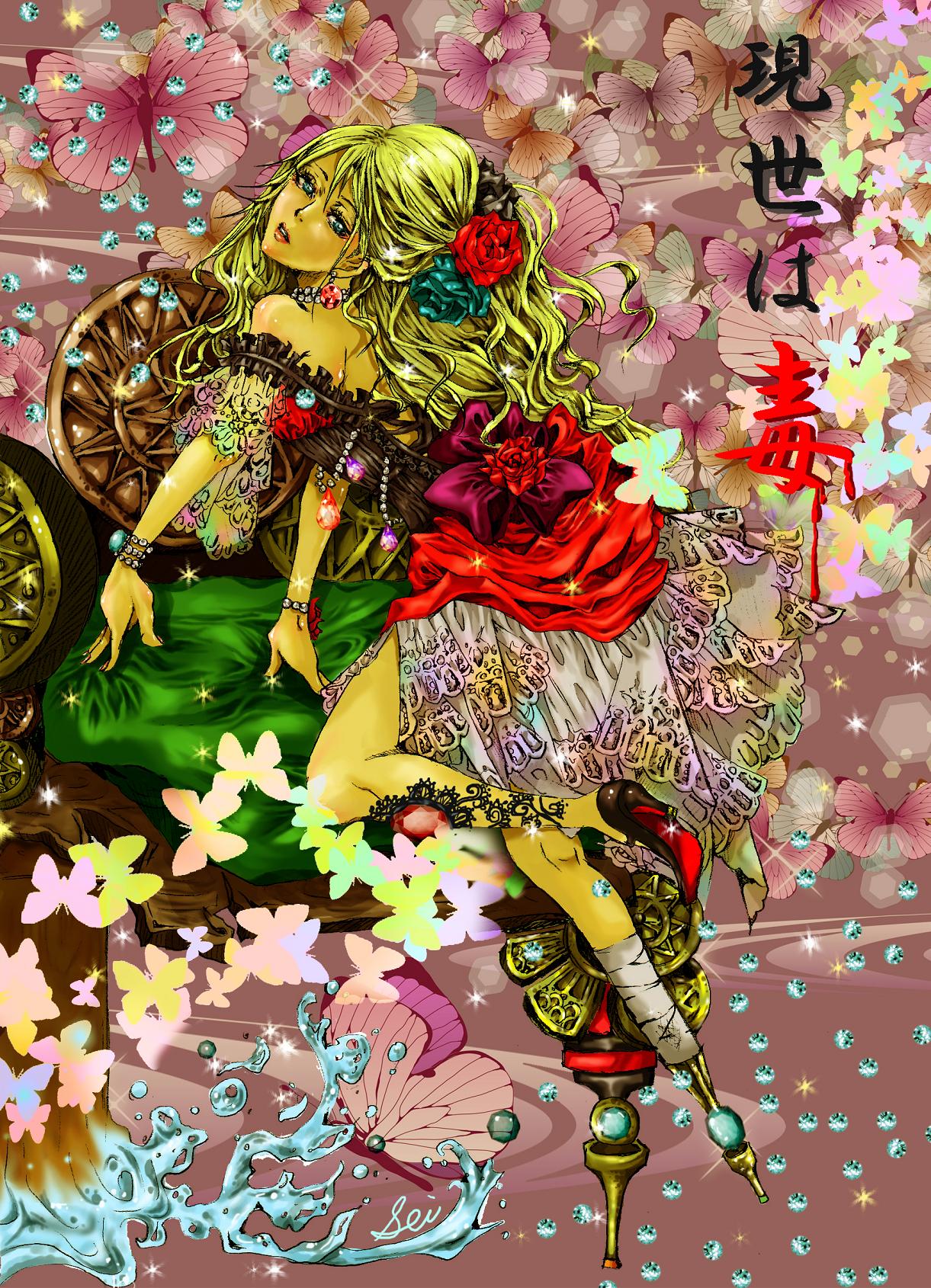 ●「現世は毒」。 彼女はそう呟いて煌びやかで豪奢なレースの施されたドレスからほっそりとした美しい脚を覗かせた。 そこにあるのは歪な義足。 「蝶よ、花よと愛でられて、飛んで行かぬよう羽を毟る。現世は地獄より、恐ろしいわ。ここよりは地獄のほうがまだ楽園。」 傾きかけた国では、人の心までも傾いてしまうのだろうか。 煌びやかな街の裏側、今日も彼女は地獄を夢見る。